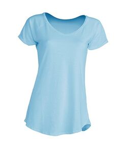 Женственная футболка нежного светло-голубого цвета приталенного кроя со скругленным низом и V-образным вырезом. • Благодаря 100% хлопку, из которого изготовлена футболка, материал обеспечивает отличную вентиляцию и отведение пота. • Благодаря очень тонкой ткани 120 г/м² в ней комфортно даже в...