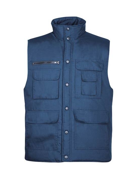 • Жилет TONY синего цвета отлично защищает работника от холода, но не ограничивает его подвижность.