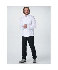 Комплект состоит из фартука поварского колпака. Фартук с двумя накладными карманами, бретелью через шею и двумя завязками-поясами. Колпак с объемным верхом, тульей средней высоты и завязками для регулировки объема.