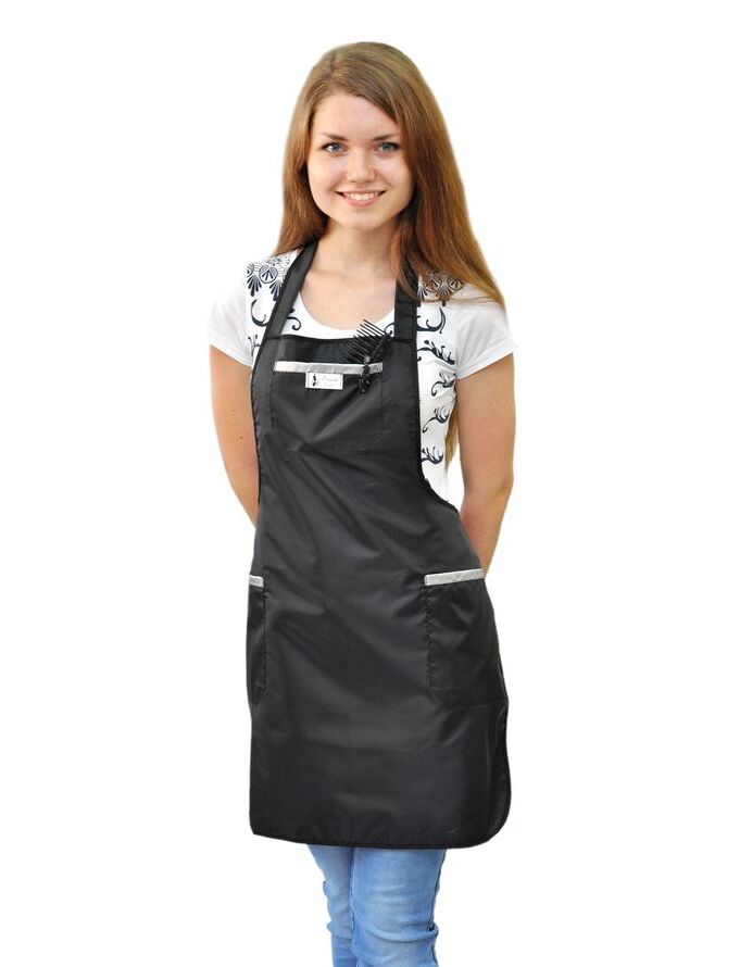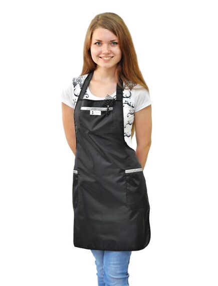 Передник средней длины, без спинки, с цельно-выкроенным нагрудником, с двумя накладными вместительными карманами в центральной части передника и удобной шейной бретелью. Объем передника регулируется завязками-поясами, все срезы передника обработаны контрастным капроновым кантом. Изделие изготовлено из легкой и прочной ткани, с водоотталкивающей пропиткой, а ее шелковистость обеспечивает легкое соскальзывание мелких частиц. Передник для парикмахера "Леди" предназначен для использования в сфере обслуживания.