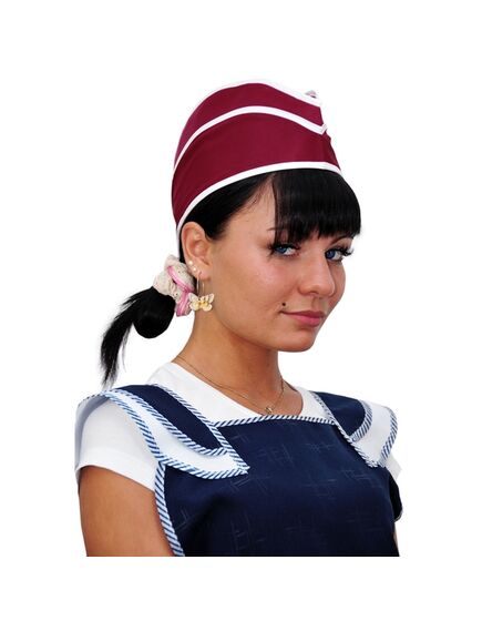 Пилотка из нейлона, окантованная бейкой белого цвета. Рекомендуется для работников торговли, сферы обслуживания, технического персонала гостиниц.