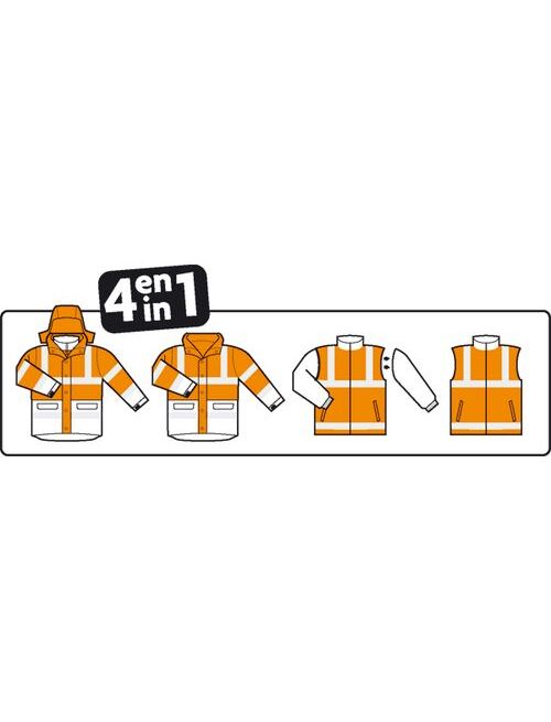 Сигнальная куртка HI-WAY 4в 1 изготовлена из полиэстера Oxford 300D, покрытого полиуретаном (70% полиэстер, 30% полиуретан). Это особо прочный материал, который защищает от ветра, воды, не меняет своих свойств при низких температурах. Утеплитель из флиса хорошо защищает от холода. Сварные швы придают рабочей куртке еще большую прочность и водостойкость. Благодаря отстегивающимся рукавам и внутренней куртке парка COVERGUARD HI-WAY 4 в 1 может выполнять функции нескольких видов верхней одежды: • водостойкая парка, • водостойкая парка с флисовым утеплителем, • флисовая куртка, • жилет без рукавов. И внешняя куртка, и внутренняя обладают повышенной видимостью за счет яркой расцветки и светоотражающих полос. За счет функциональности куртка COVERGUARD HI-WAY 4 в 1 станет идеальным вариантом верхней одежды для всех, кто круглый год работает в условиях, требующих повышенной видимости.