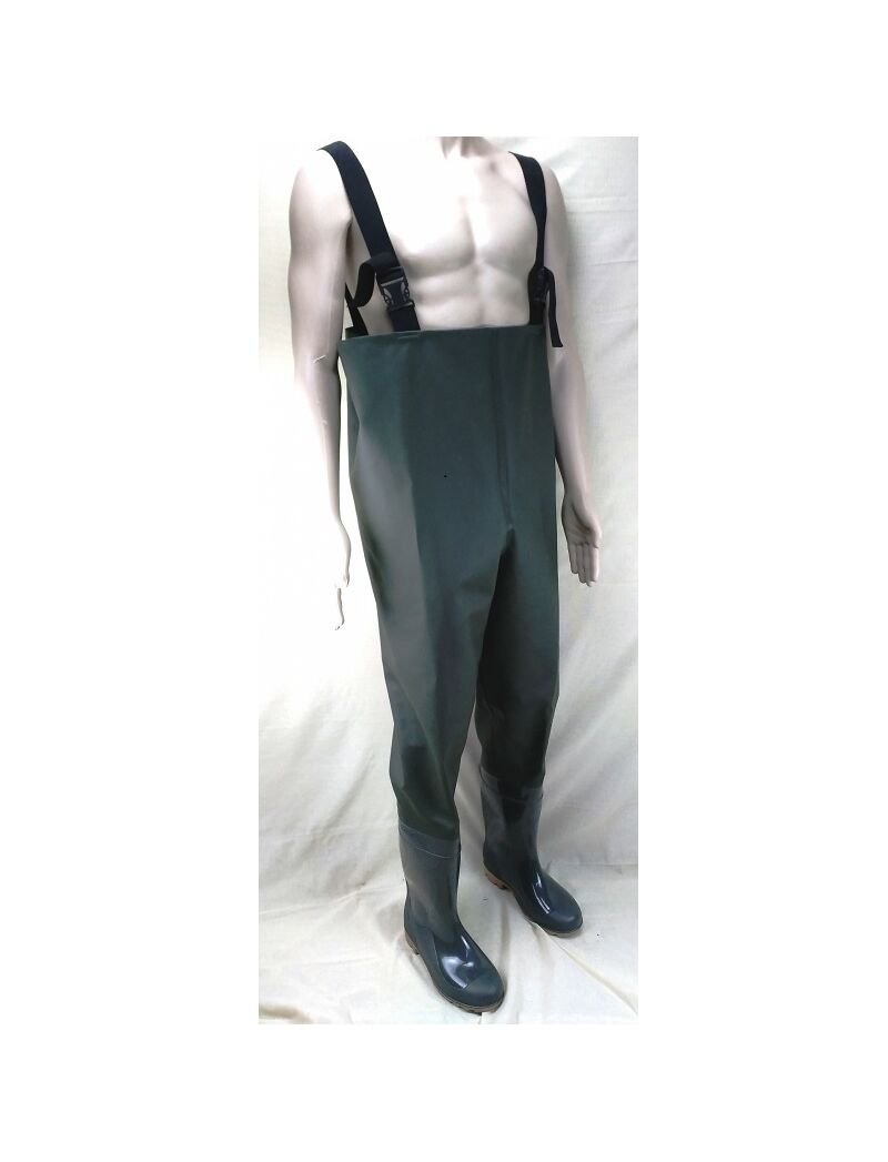 Полукомбинезон представляет собой герметичную одежду для рыболовов, охотников, в качестве рабочей одежды: на морских и речных судах и в портах, на работах и производстве, связанных с экстремальными погодными условиям . Модель разработана на базе сапог из ПВХ, к которым на современном оборудовании при помощи сварки крепится текстильный верх из винитола или нейлона, лямки регулируются по высоте. Все конструктивные элементы забродного полукомбинезона привариваются друг к другу токами высокой частоты, что обеспечивает полную герметичность соединений, а соответственно, и защиту от воды. Дополнительно применяется технология двойного шва, которая придает изделию гарантированную прочность, износостойкость и герметичность.