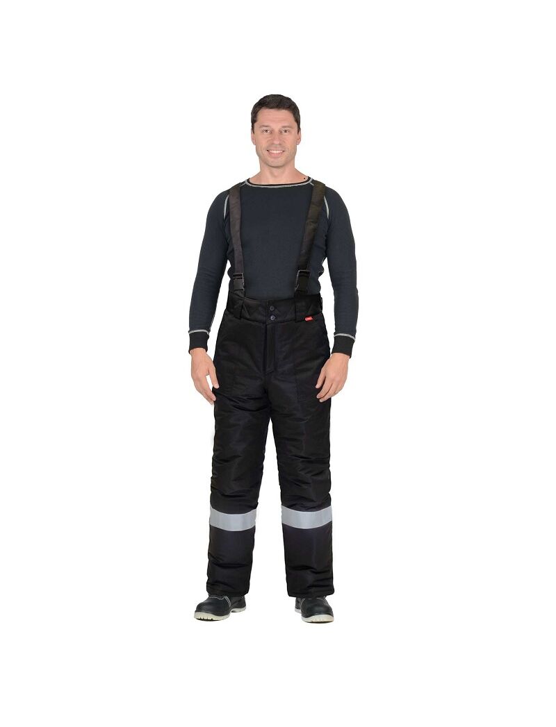 Брюки прямые на утеплённой подкладке, с застежкой спереди на гульфик с молнией. Брюки с фигурным широким поясом с застежкой на 2 пуговицы, с боковыми накладными карманами, со съёмными бретелями. Бретели пристегиваются к брюкам при помощи пуговиц и петель, регулируются по длине защелками-фастексами.