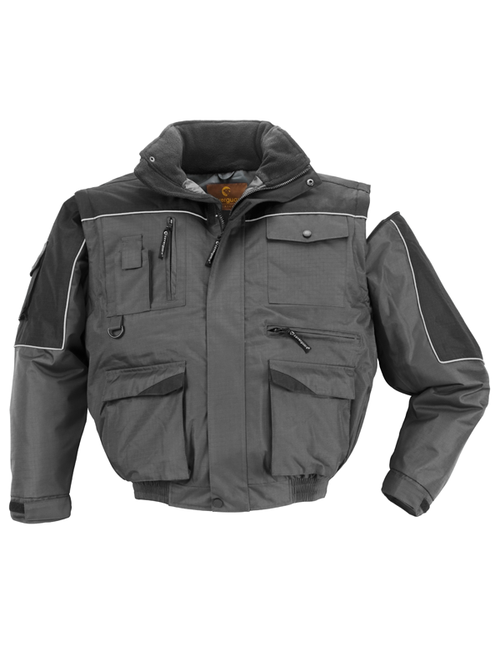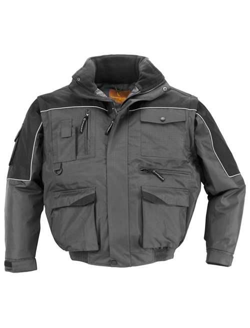 Куртка изготовлена из 100% полиэстера Ripstop. Особыми характеристиками можно выделить прочность, стойкость к деформации, вещи не мнутся, не растягиваются, огнестойкость - рип-стоп не прожигается также благодаря специальной пропитке. Также можно выделить стойкость к загрязнениям и химическим соединениям. Относительная легкость и мягкость.
