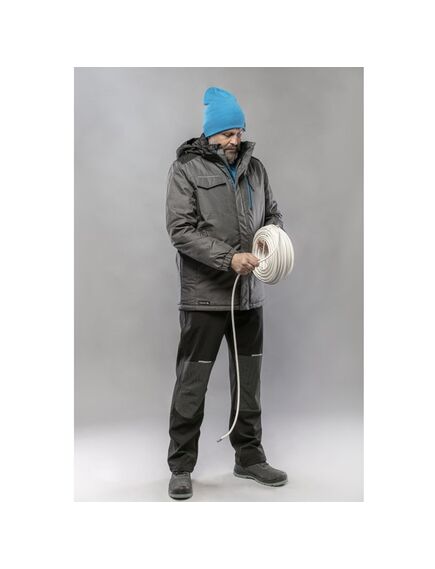 Мужская утепленная куртка с капюшоном. Она идеально подойдет для повседневной носки. Прекрасно защищает от холода, дождя и мороза. Светоотражающие детали обеспечивают повышенную видимость и безопасность при работе в опасных условиях. -материал: 100% полиэстер, Оксфорд 300D, полиуретановое покрытие, водостойкость 2000 мм H₂O -наполнение синтетическое: плотность ткани куртки – 240 г/м², рукавов и капюшона – 200 г/м², -с 5 карманами: — 1 нагрудный карман на молнии — 1 карман на липучке — 2 нижних утепленных кармана — 1 внутренний карман для документов -капюшон утепленный, съемный -низ куртки регулируется скрытой тесьмой -рукава на резинке.