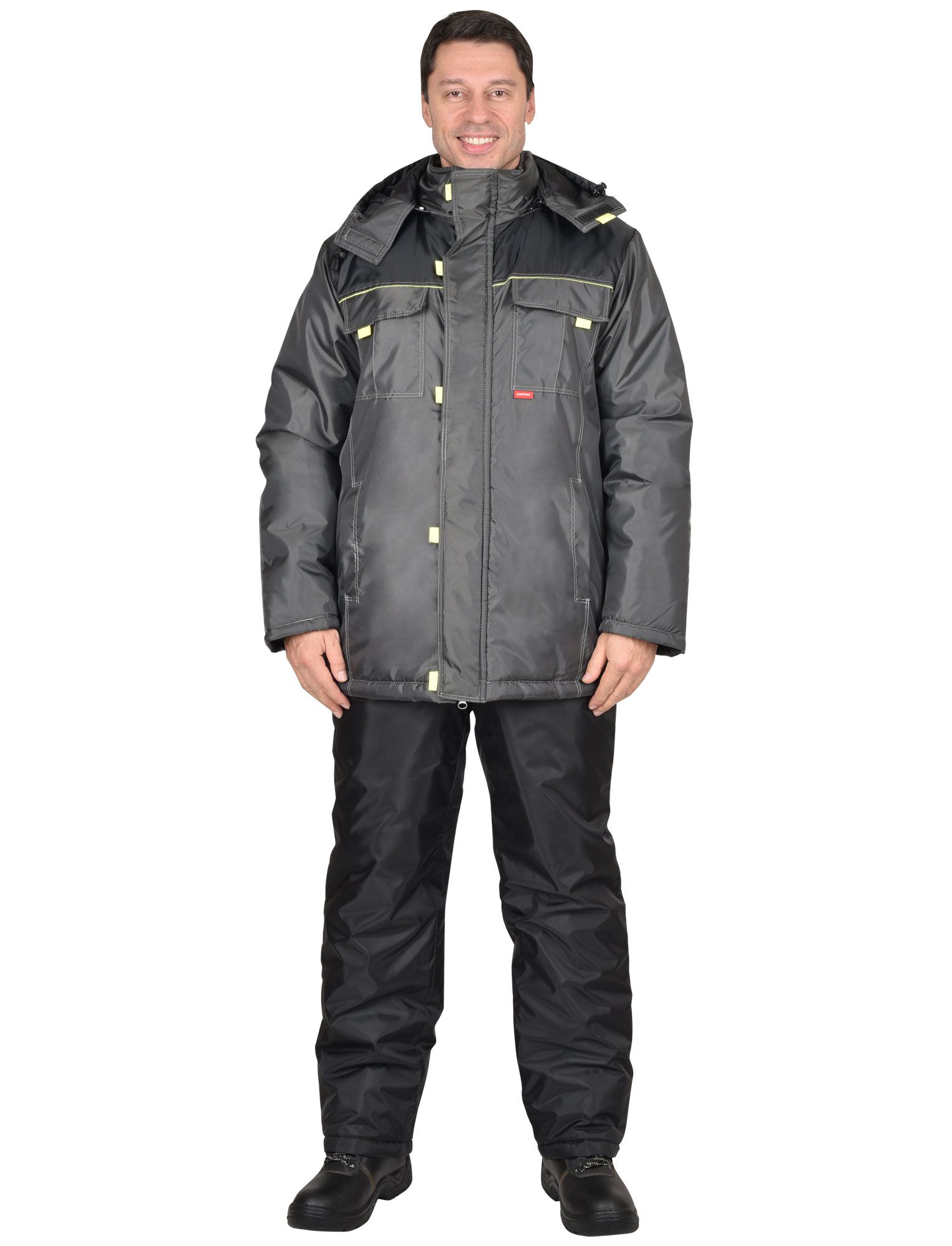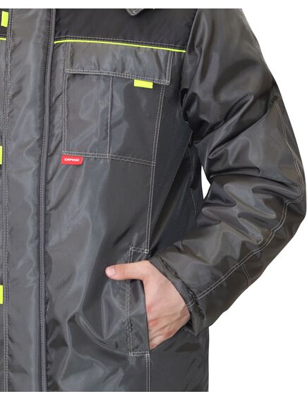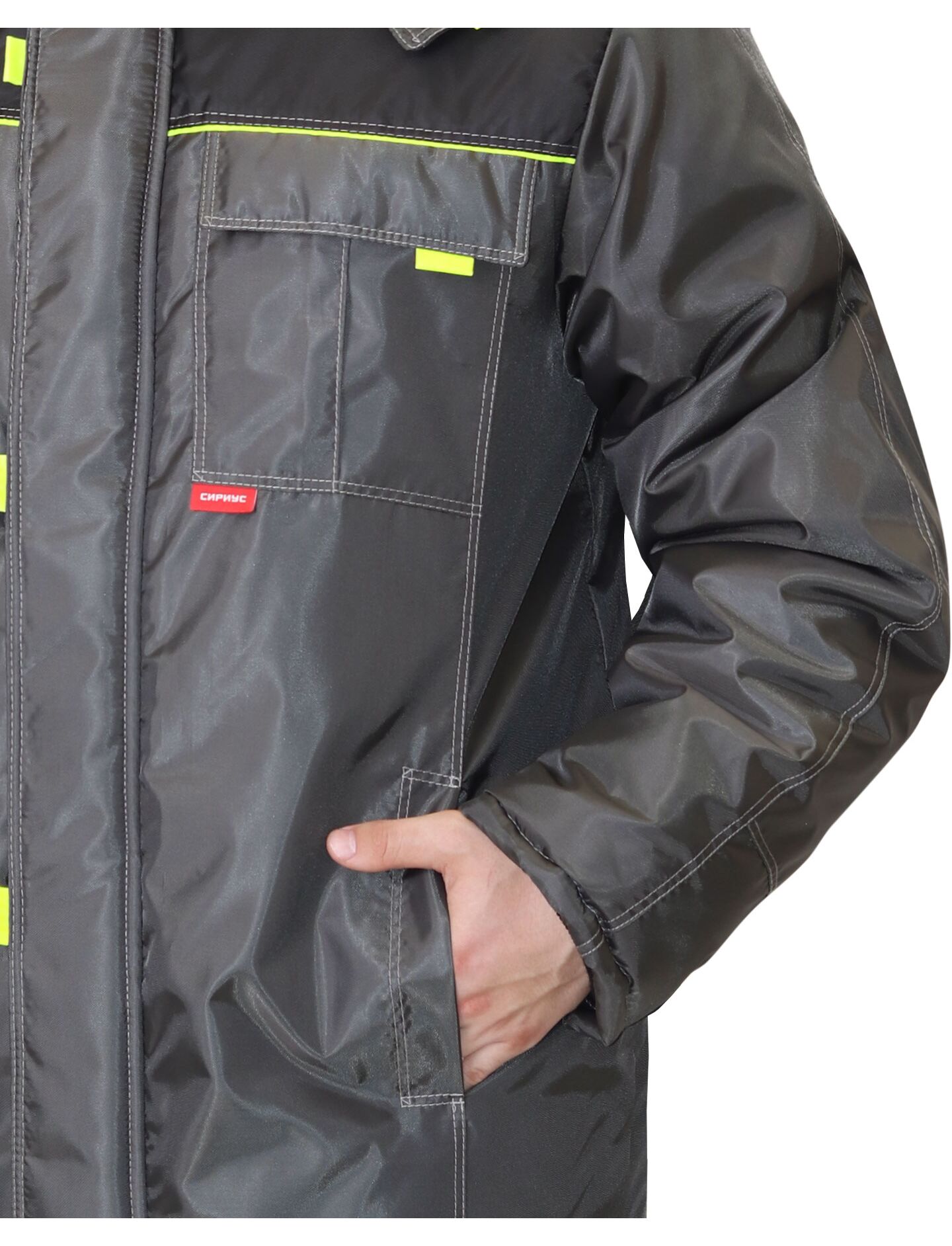 Удлиненная зимняя куртка СИРИУС ФАВОРИТ обеспечивает защиту и комфорт во время работы на открытом воздухе. • Утеплитель из синтепона плотностью 150 г/м² препятствует переохлаждению. • Центральная застежка-молния закрыта ветрозащитным клапаном на липучках. Это обеспечивает дополнительную защиту от непогоды. • Втачные налокотники увеличивают срок службы рукавов, а трикотажные напульсники предотвращают проникновение холодного воздуха под одежду. • Утепленный капюшон также защищает от ветра и холода. Ткань, из которой сшит верх и подкладка куртки, на 100% состоит из полиэстера. Это прочный материал, который прост в уходе, быстро сохнет и легко очищается от загрязнений. Если вы ищете качественную теплую куртку с продуманным дизайном по разумной цене, эта модель вам идеально подойдет.
