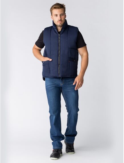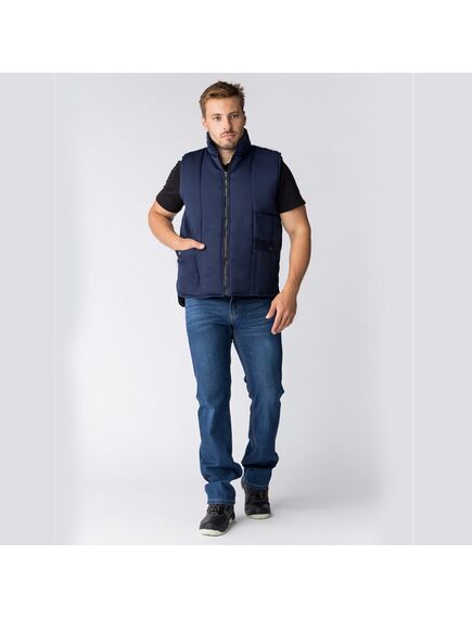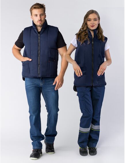 Жилет утепленный «Универсальный» предназначен для комфортной работы в холодное время года или повседневной носки на прогулках, во время путешествий и активного отдыха. Универсальный теплый жилет подходит как мужчинам, так и женщинам, прекрасно садится по фигуре и не стесняет движения благодаря боковым разрезам с округлыми углами. Удлиненная спинка полностью закрывает поясницу, препятствуя ее переохлаждению даже во время наклонов, а с помощью молнии жилет удобно надевать и снимать. Благодаря плотной ткани с влагоотталкивающей пропиткой жилетка надежно защищает от осадков и отличается износостойкостью. Утеплитель синтепон помогает сохранить тепло, а воротник-стойка закрывает шею от ветра. Безрукавка дополняется удобными боковыми карманами на кнопках, где можно размещать необходимые мелочи и расходники. Для указания ФИО присутствует этикетка с изнаночной стороны.