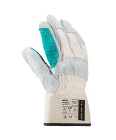 Перчатки из серого спилка воловьей кожи и зеленой ткани. Подкладка – из мягкого натурального хлопка. • Кожаные вставки защищают пальцы и ладони от заноз, порезов и проколов. • Тыльная сторона ладони выполнена из парусины, которая обладает хорошей воздухопроводностью и теплоизоляцией. • Манжета...