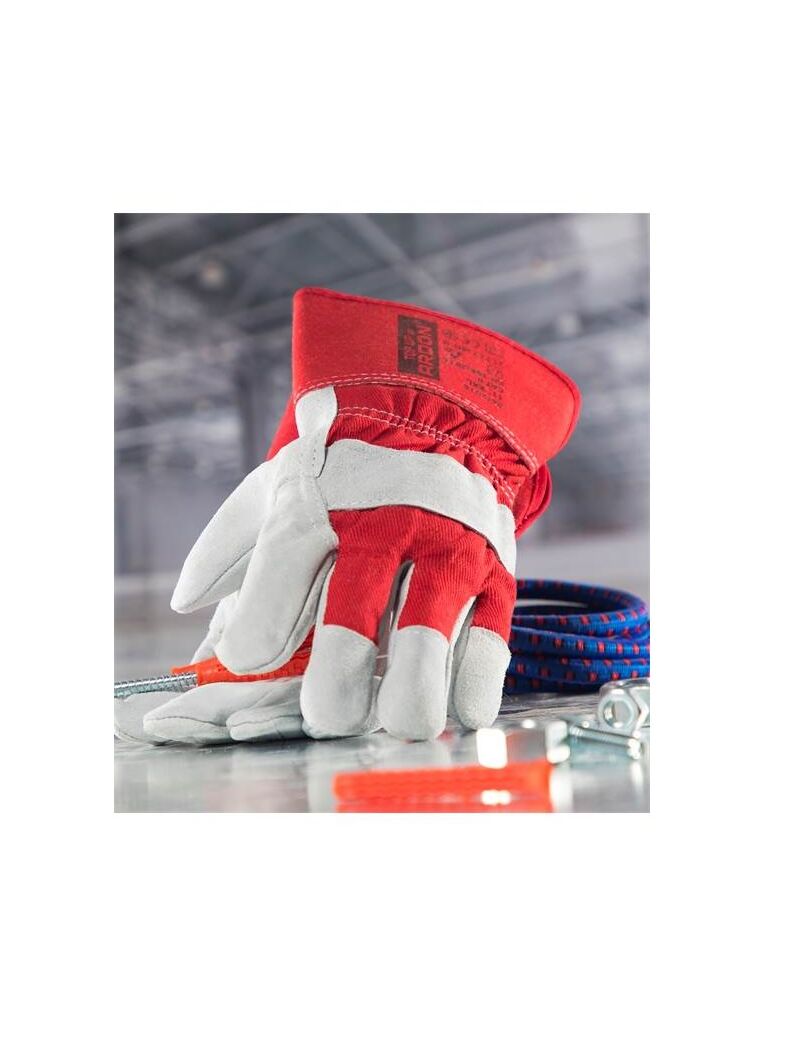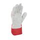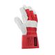 Перчатки из серого спилка телячьей кожи и красной ткани. Подкладка – из мягкого натурального хлопка.