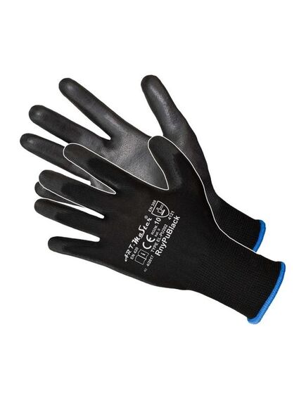Перчатки AM RnyPu Black защитные из нейлона чёрные