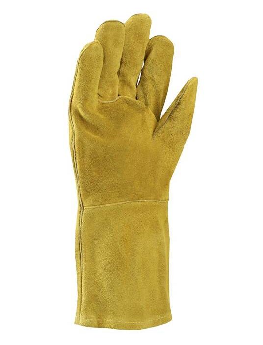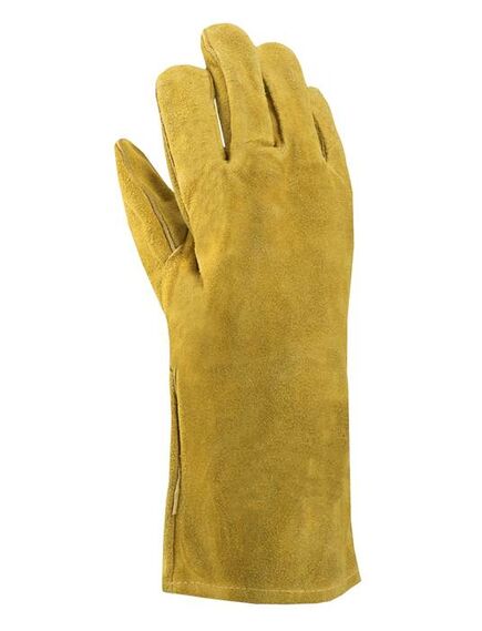 Перчатки пятипалые , сшивные, изготовлены из качественного плотного спилка. Высокая устойчивость к истиранию и разрыву. Перчатки применяются для сварочных, монтажных, холодное литье и других работ, для средних и тяжелых работ в строительстве, тяжелой промышленности. В работах, связанных с угрозой получения порезов, ссадин, заноз, для работы с металлом. Выдерживают воздействие высоких температур (EN 407) ― до 100 С. Желательно использовать в сухой среде. Рукавицы имеют отличный широкий захват, очень удобны, практичны и долговечны в работе.