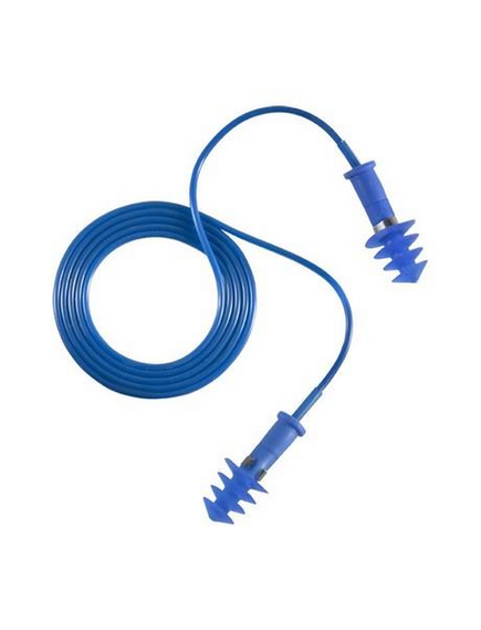 Многоразовые, моющиеся беруши EARLINE BUP на шнурке синие из термопластичной резины в форме елочки надежно защищают от агрессивных звуковых воздействий: