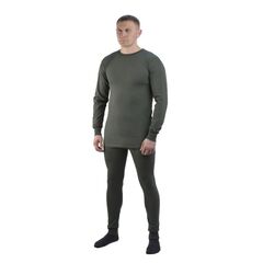 Мужское белье оливкового цвета предназначено для ношения как во время сна, так и в качестве нижнего белья под одежду. Материал – трикотаж. • Комплект белья состоит из кальсонов, скроенных по фигуре, и фуфайки с длинными рукавами. • Ткань белья мягкая, что обеспечивает удобное ношение и комфорт во...